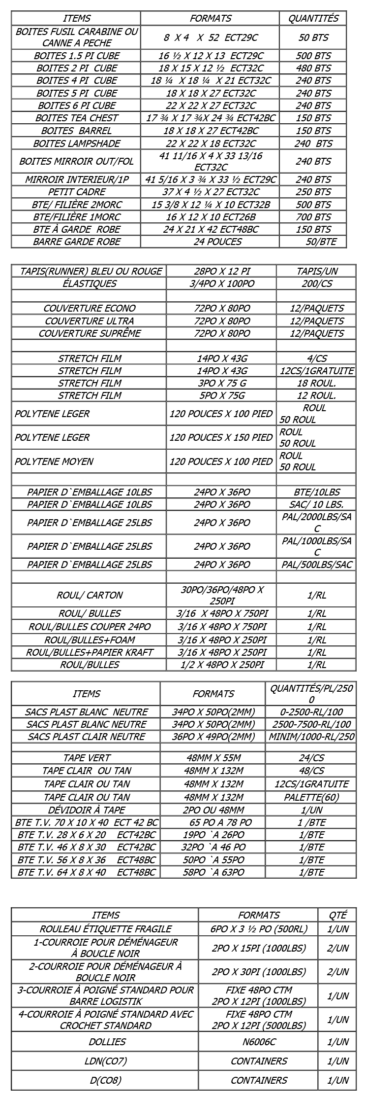 Matériel emballages disponible